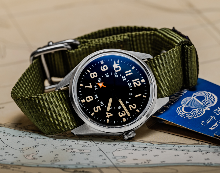 We started the Overlord project with a simple question. What if members of the Allied assault forces during World War II designed the field watch they wore into battle? We took that question and asked it to roughly 70 members of the Airborne community. Over the course of 90 weeks from start to finish, we came up with what you see here. Introducing the " Para Overlord" a rugged field watch a focused with American WWII ingenuity in mind.