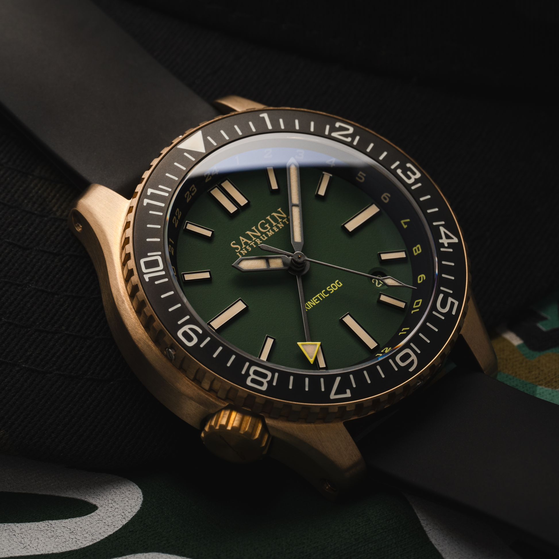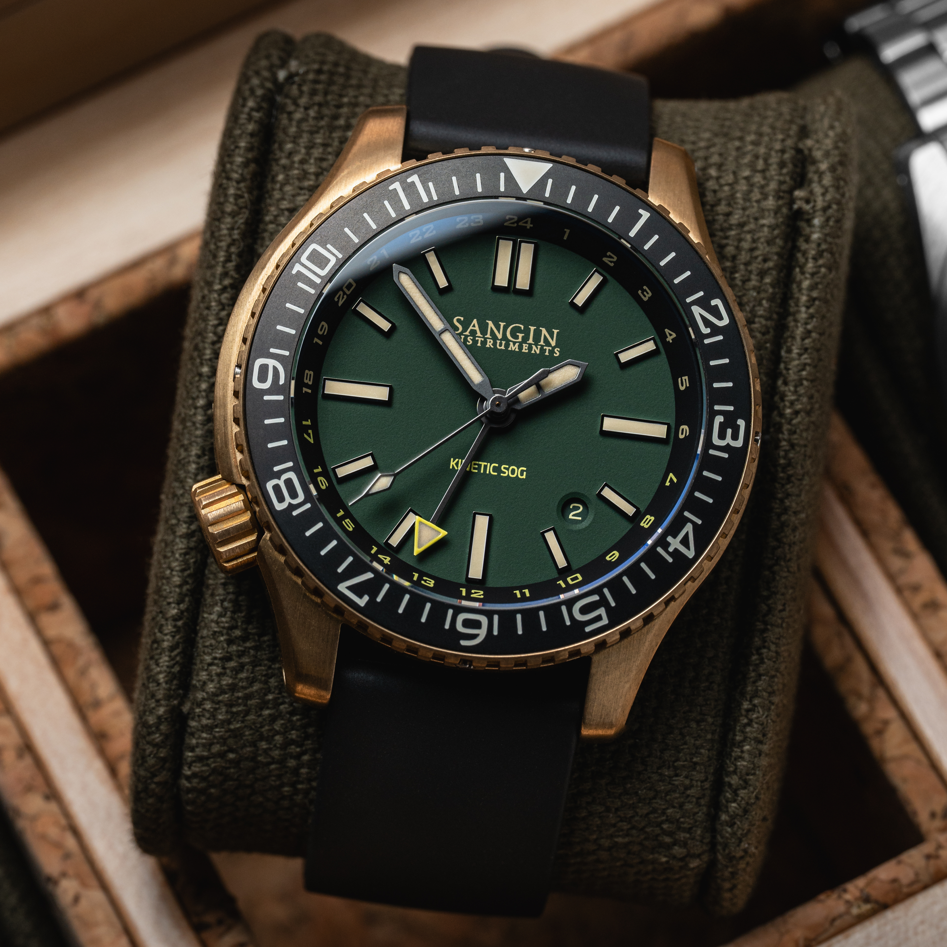 Today, we are delighted to present the culmination of this collective effort: the Kinetic II SOG. This exceptional timepiece stands as a testament to the synergy between innovation and tradition, where modern design meets timeless elegance. At its core lies a premium bronze case—a material chosen for its durability and distinctive character—expertly crafted to endure the test of time.